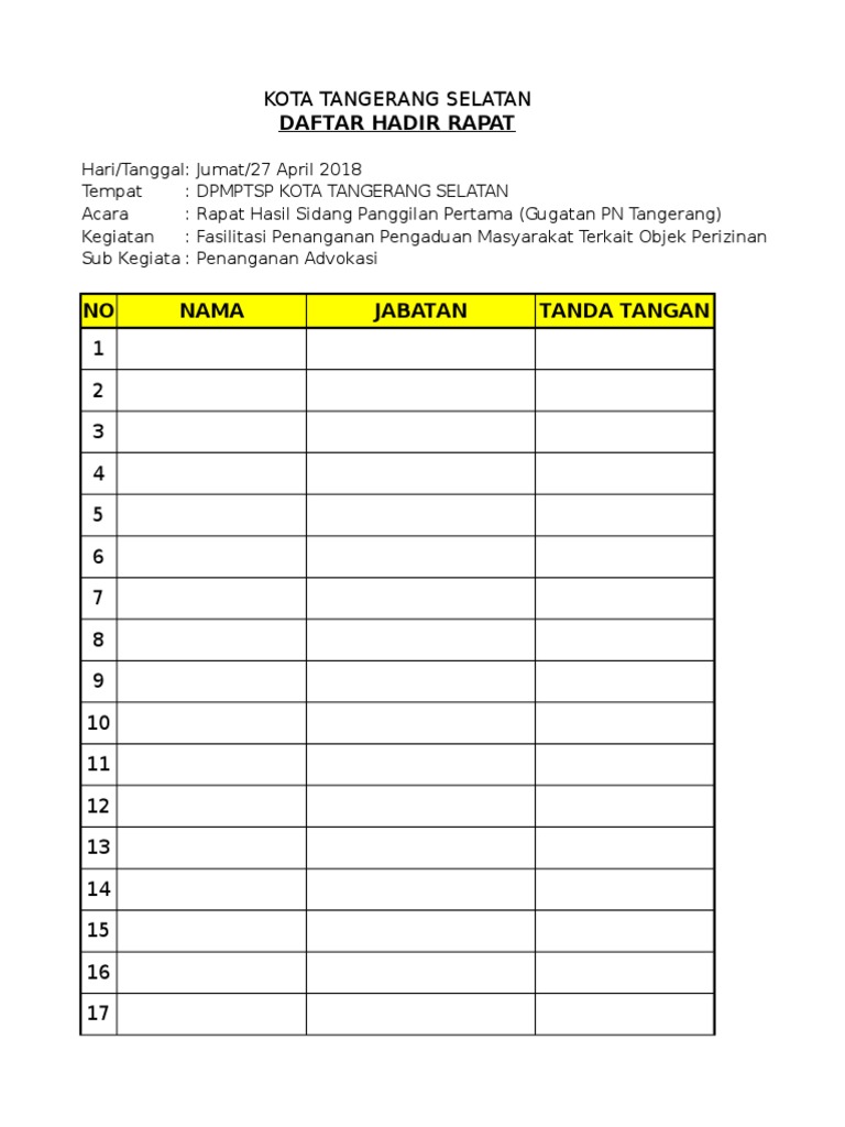 Cara Membuat Daftar Hadir Rapat Dinas Lagu Mp3 Mp3 Dragon from i2.wp.com Format daftar hadir rapat excel. Cara membuat daftar hadir rapat dinas. Yudhi's no nama kantor/proyek no. Daftar hadir rapat format excel. Nama siswa tempat waktu kelas : Kumpulan berita acara rapat kegiatan sekolah. Sign up for a scribd 60 day free trial to download this document plus get access to the world's largest. Cara membuat daftar absen untuk 1 bulan di excel panduan lengkap.