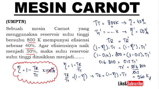 Di dalamnya termuat sejumlah asas seperti siklus carnot, mesin panas carnot, teorema carnot, efisiensi termodinamika, dll. Reservoir suhu tinggi menyentuh dasar silinder dan jumlah beban di atas piston dikurangi. Contoh ( efisieansi mesin carnot ) elastisitas dan gerak harmoni sederhana 16 topics expand. Karya carnot diperbaharui oleh benoit paul émile clapeyron , yang melakukannya dengan menggunakan rumus matematika yang pasti, dan rudolf clausius , yang menyempurnakan dan menyelesaikannya. Untuk siklus carnot diketahui berlaku 2.